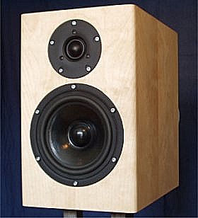 Fortsatta tester av HFLS-1I väntan på elementen togs en riktig högtalarlåda fram. Denna blev vackert fanerad i björk, 19mm MDF och rejält dämpad bl.a. med Bitumen. Observera fasningen av hålet. Måhända en suboptimering, men skall det göras rätt så skall det göras rätt. Högtalarelementen är tänka att sättas med bult och islagsmutter. |
